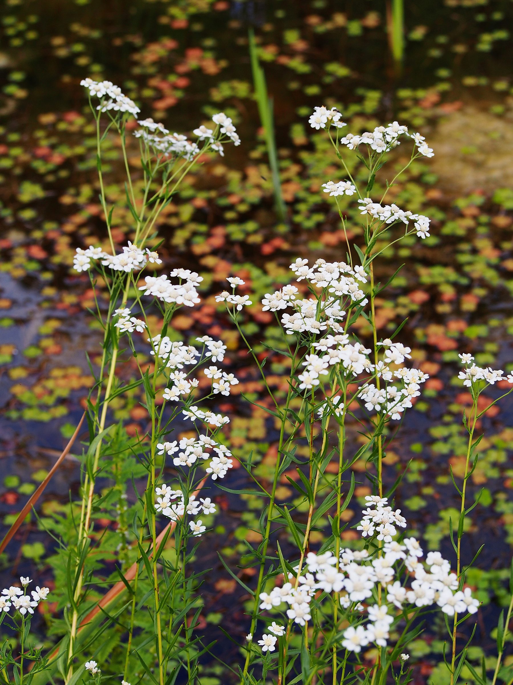 - Как узнать: узкие зубчатые листья и небольшие белые корзинки.