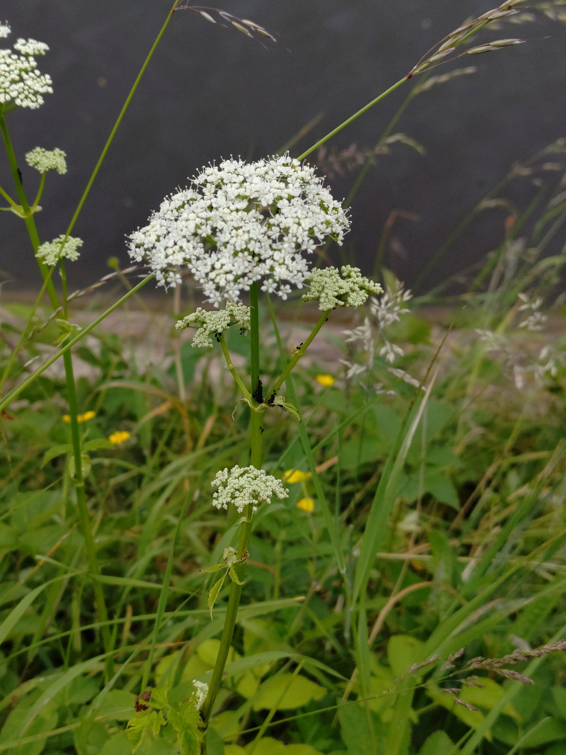 - Дягиль лесной (Angelica sylvestris) — растение значительно крупнее, черешки у основания заметно “вздуты”, соцветия крупные и плотные.