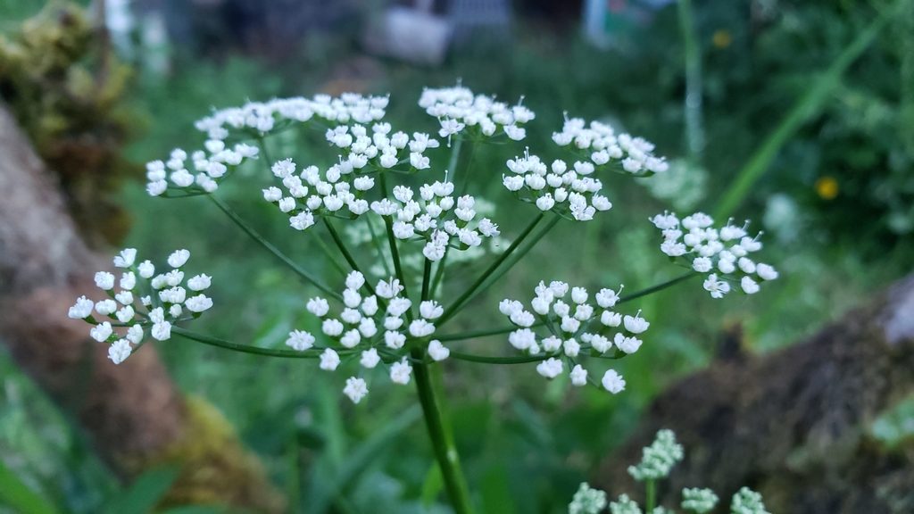 - Петрушка собачья (Aethusa cynapium) — Опасно: отравление, листья похожи на петрушку и пахнут неприятно при растирании, под зонтиком заметны длинные “свисающие” листочки.