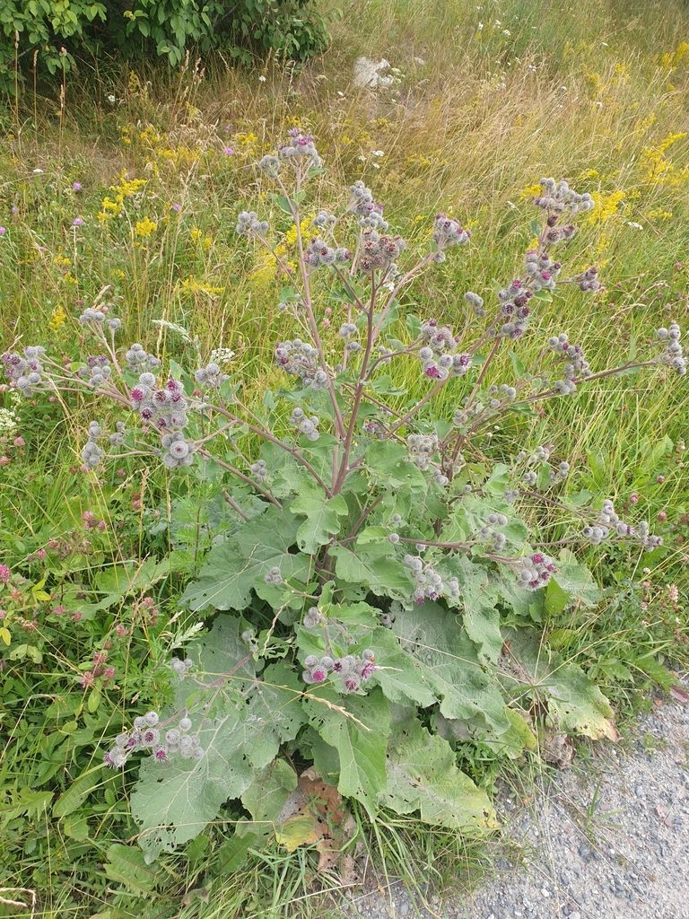 Лопух войлочный (Arctium tomentosum) — двулетнее травянистое растение из семейства Астровые. В первый год формирует крупную прикорневую розетку листьев и запасает питательные вещества в корне, на второй год выпускает высокий цветоносный побег.