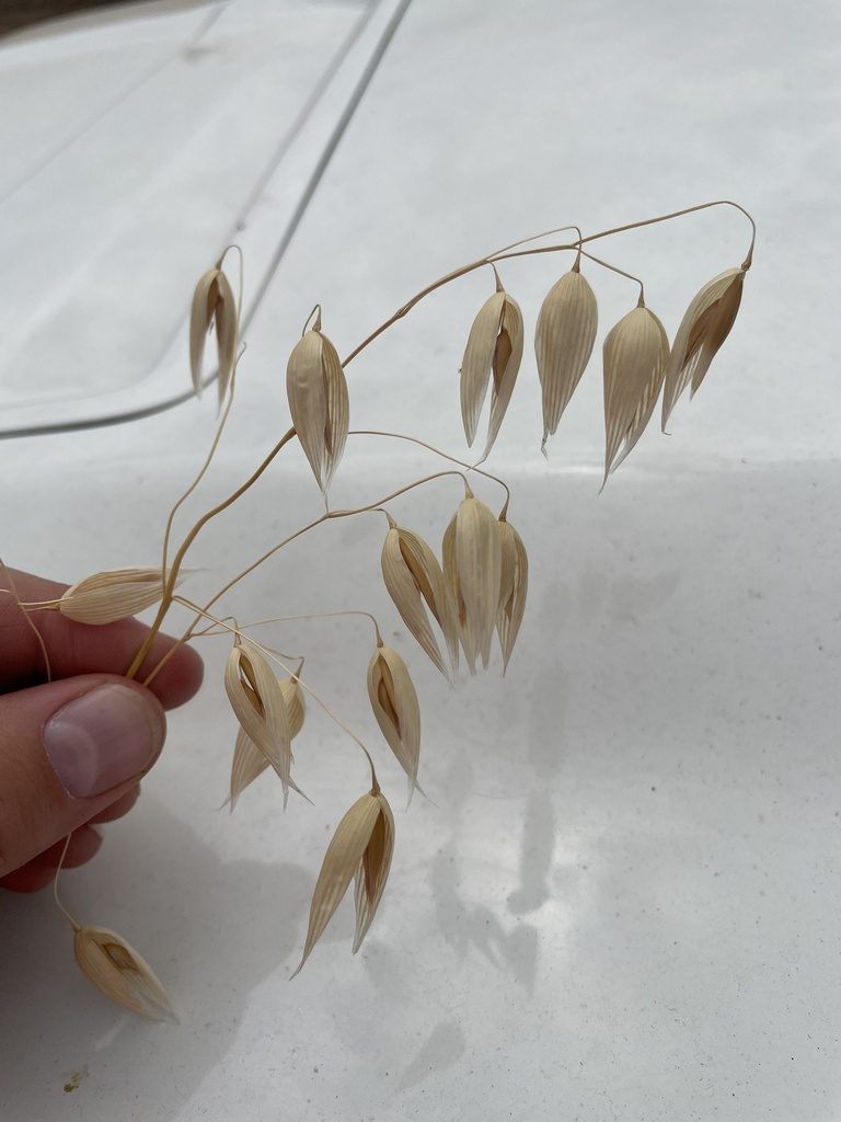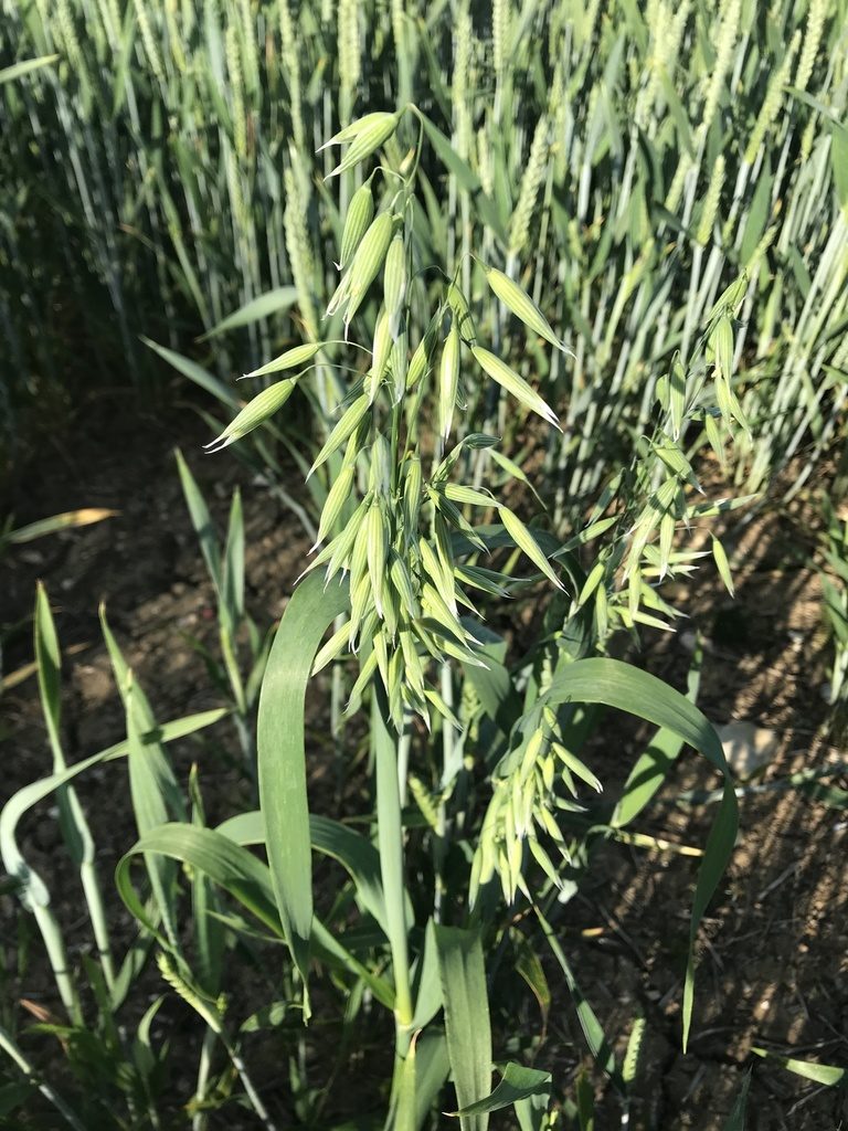 В поле овёс проще всего узнать по рыхлой метёлке, где колоски расположены на отдельных веточках и часто поникают. У колосков заметны плёнчатые чешуи, а у многих форм присутствует остистый отросток, который не образует плотного «ёршика» по всей оси.