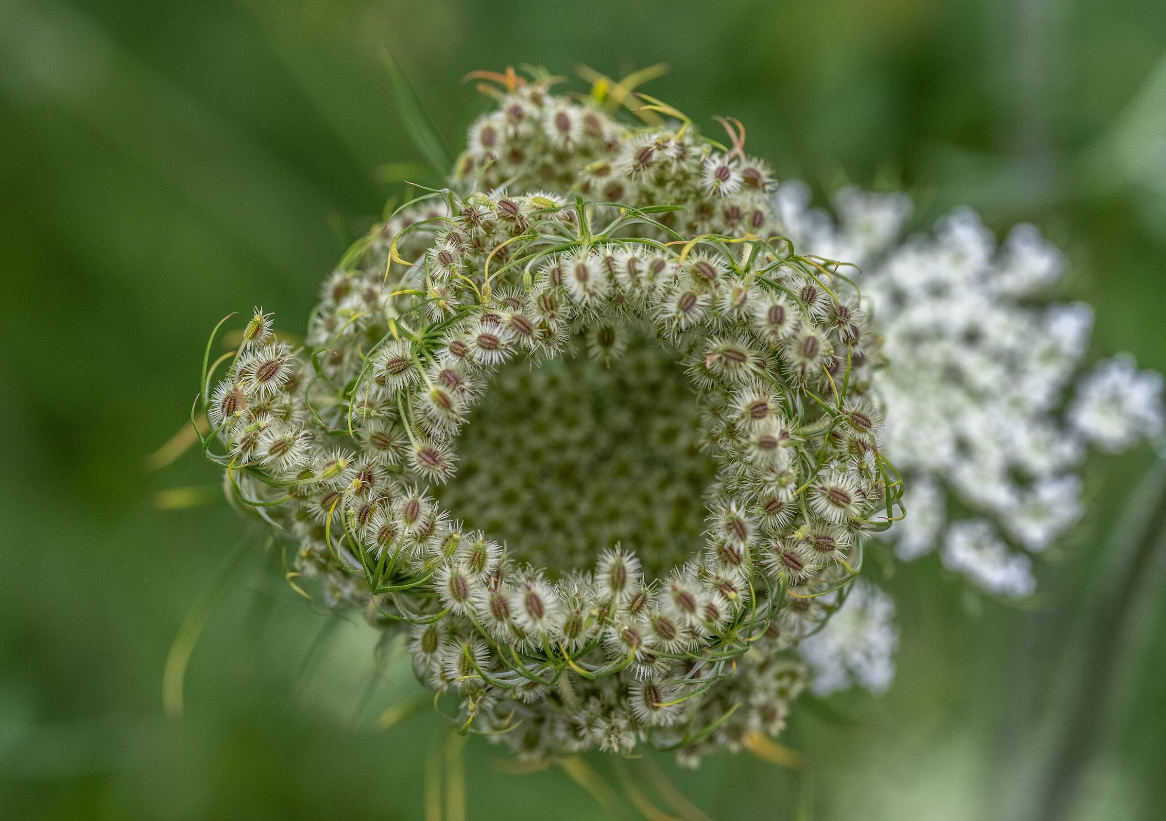 У многих растений в центре зонтика заметен один тёмный цветок, а после цветения зонтик часто сворачивается внутрь, образуя чашевидную головку.