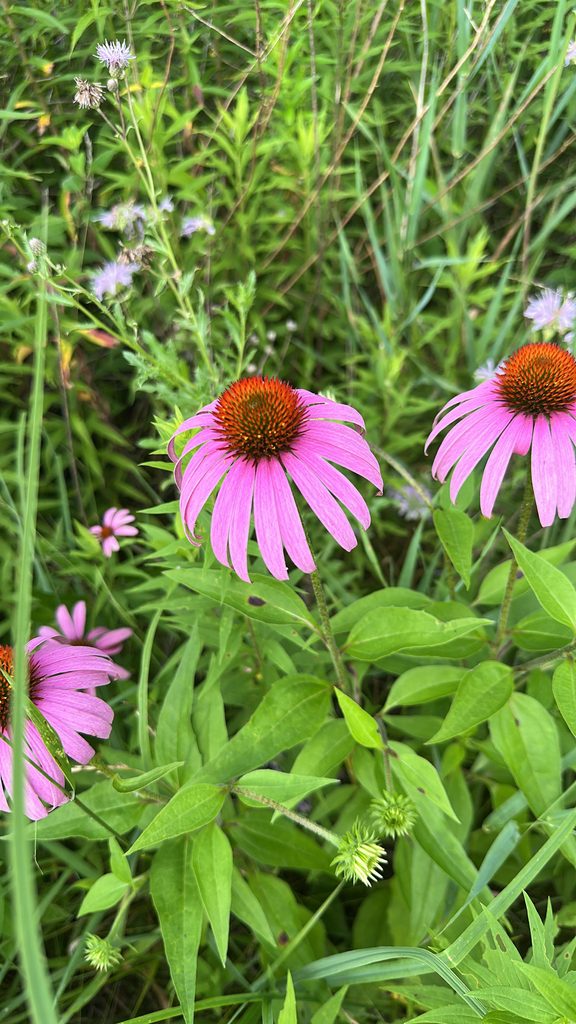 - Эхинацея узколистная (Echinacea angustifolia) — листья уже и более «узколистные», соцветия обычно меньше, а растение выглядит более компактным.