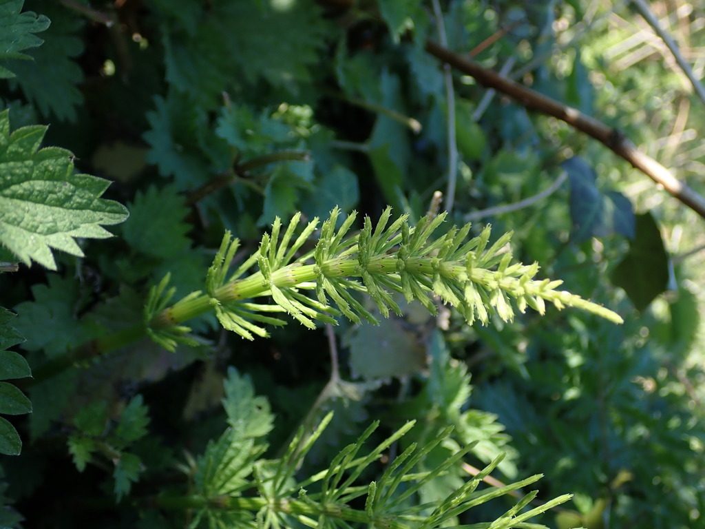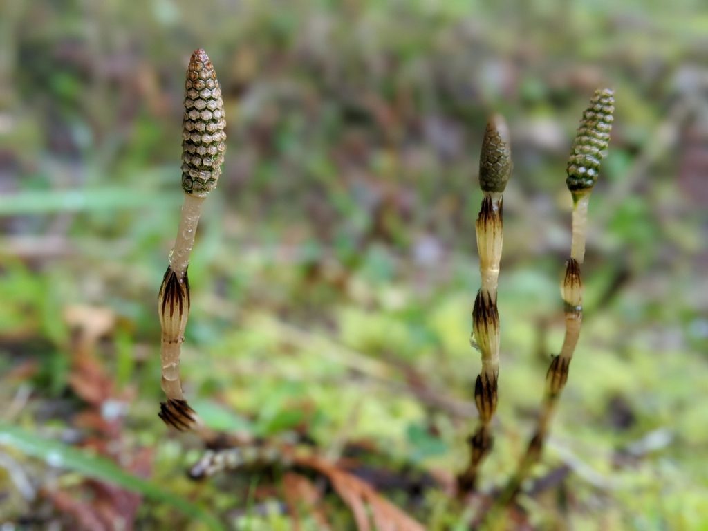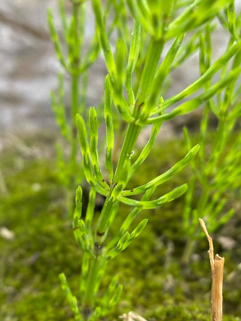 - Хвощ лесной (Equisetum sylvaticum) — выглядит более «ажурным», боковые веточки часто дополнительно ветвятся и весь побег кажется мягче.