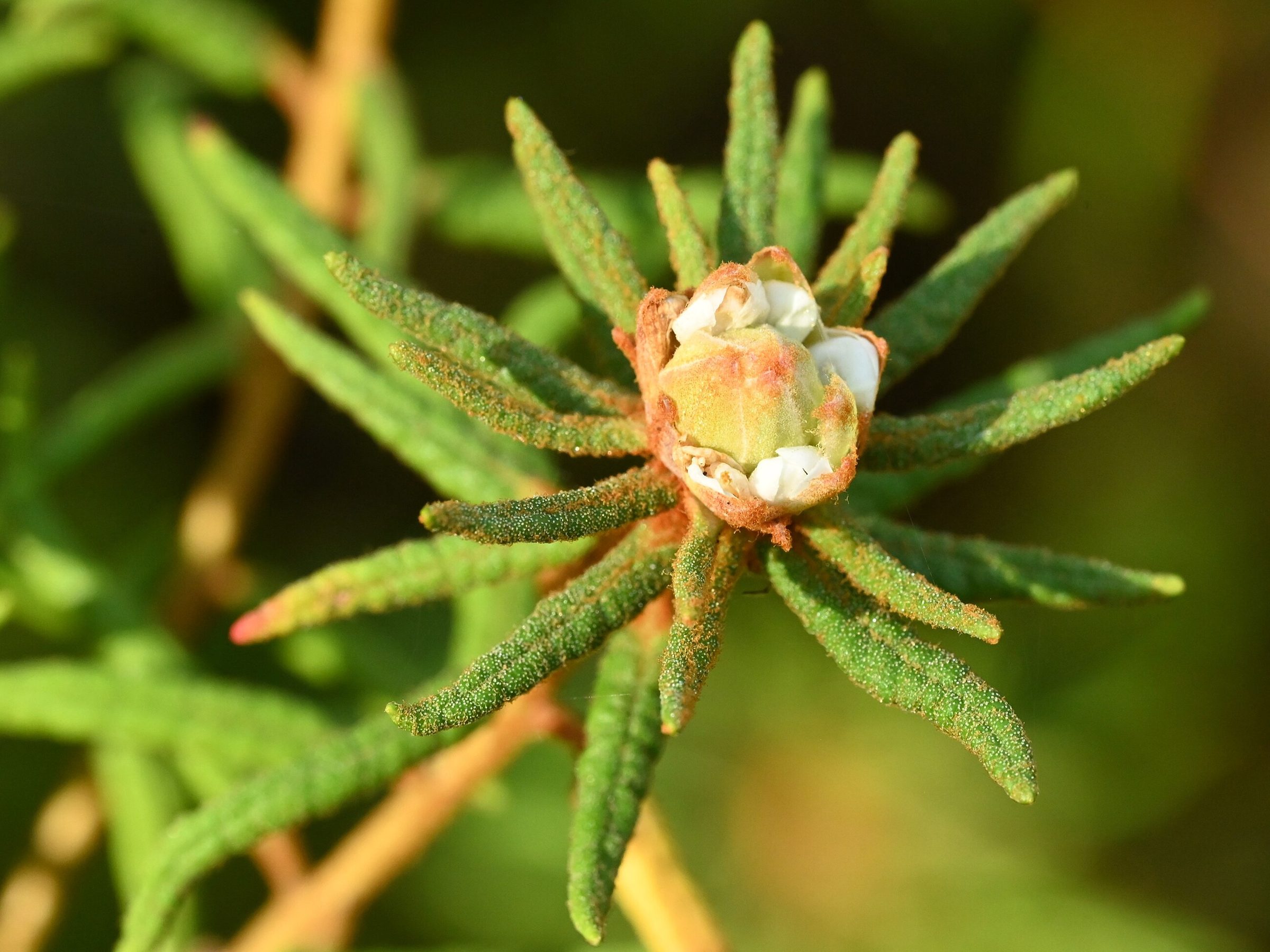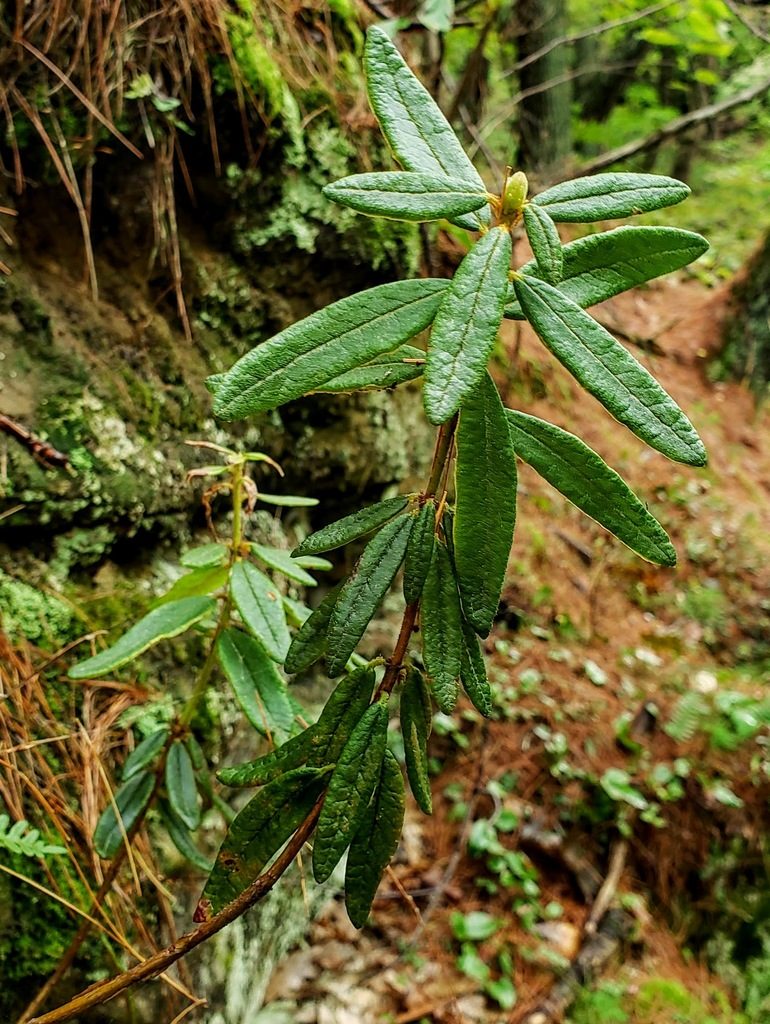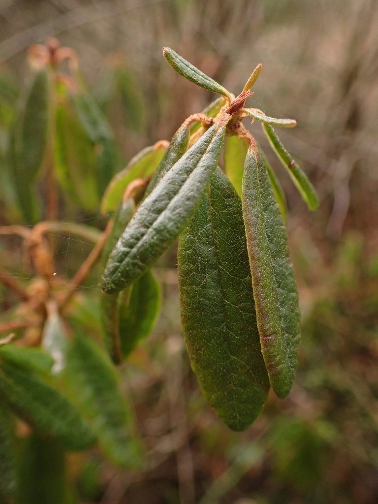 - Как узнать: Узкие кожистые листья с рыжеватым войлоком снизу и резкий смолистый запах.