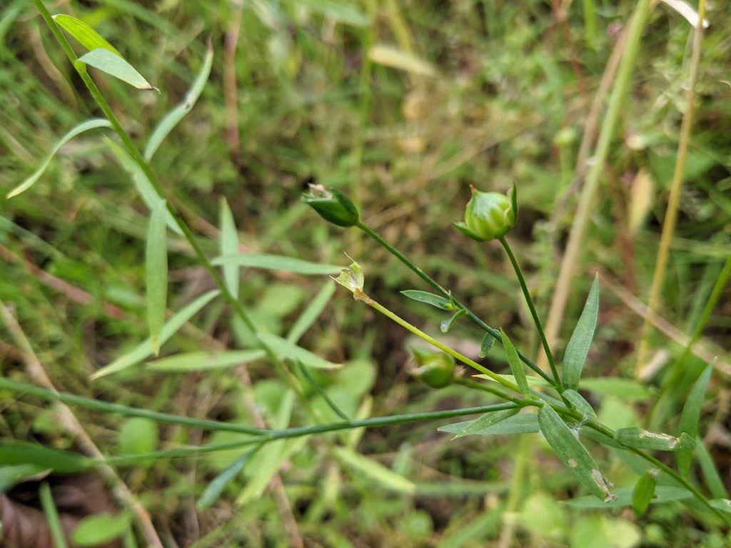В поле растение узнаётся по стройным тонким стеблям, узким сидячим листьям и нежным голубым пятилистным цветкам. После цветения формируются округлые коробочки, которые при созревании подсыхают.