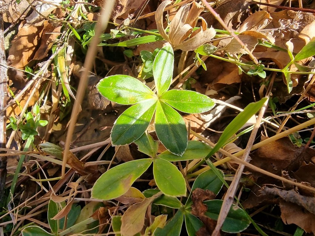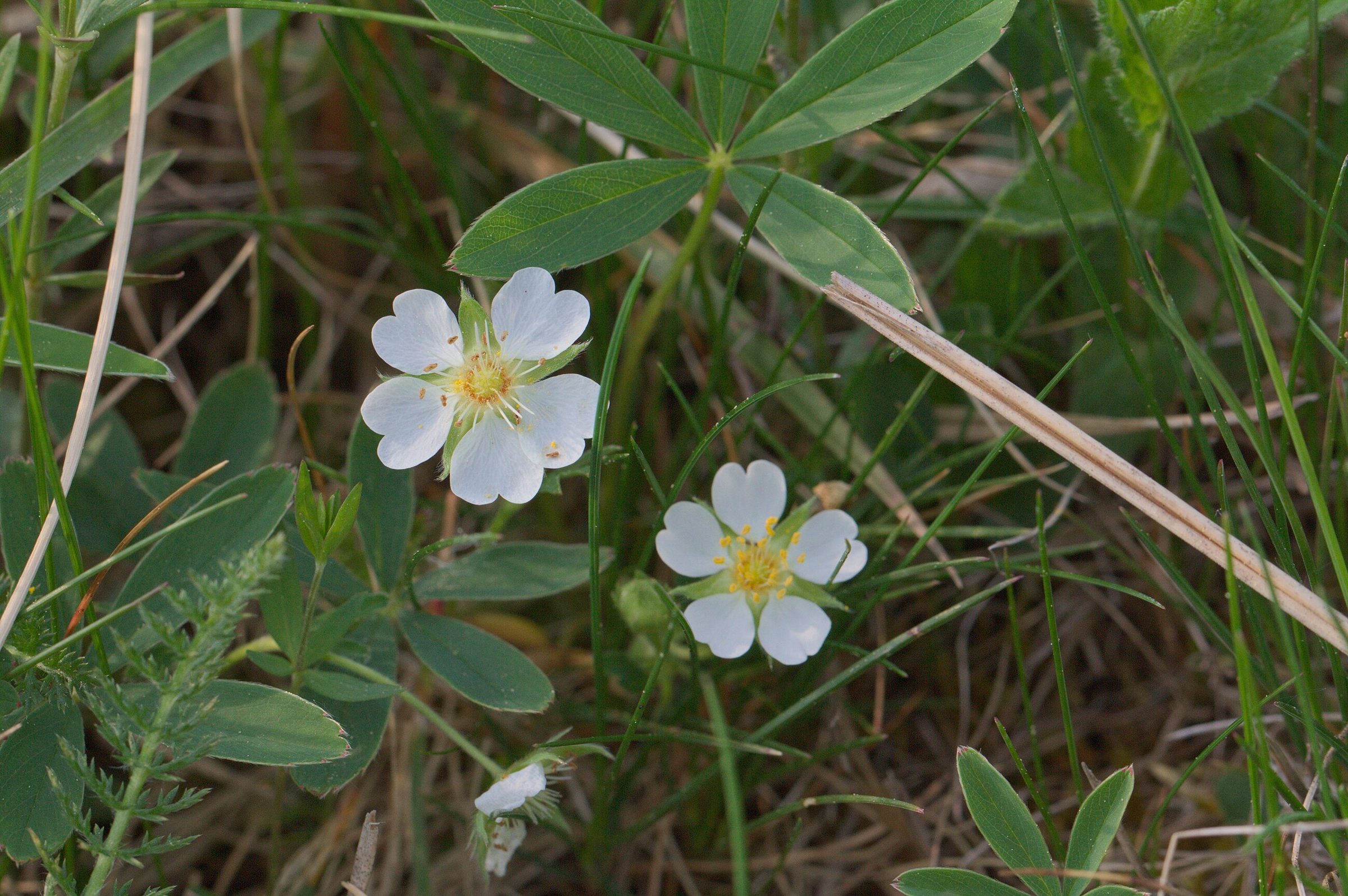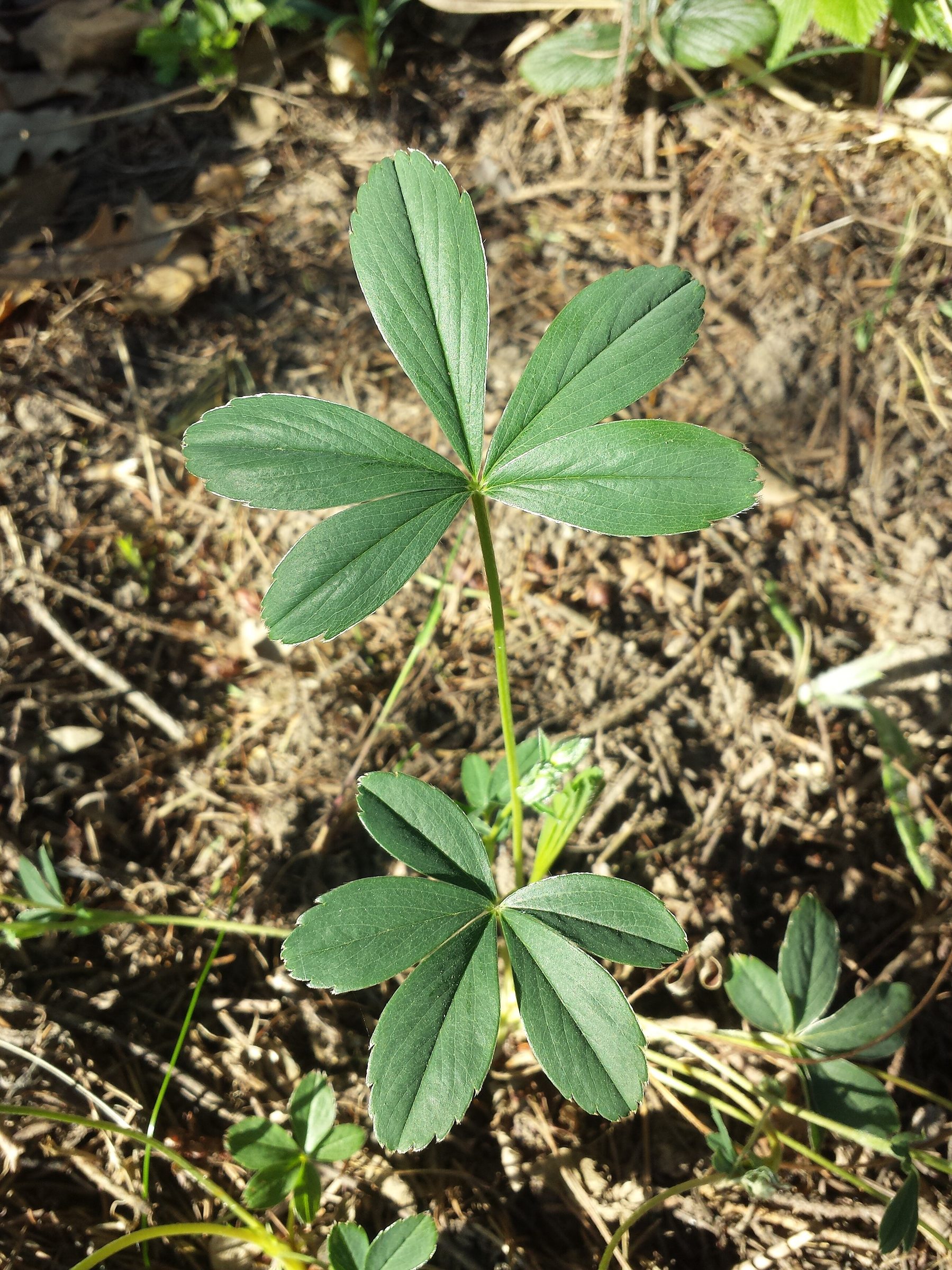 - Как узнать: Невысокое растение с пятилисточковыми листьями и белыми цветками.