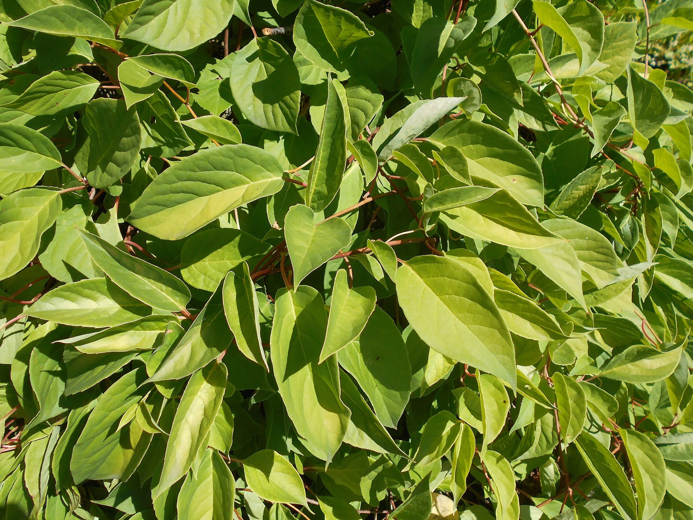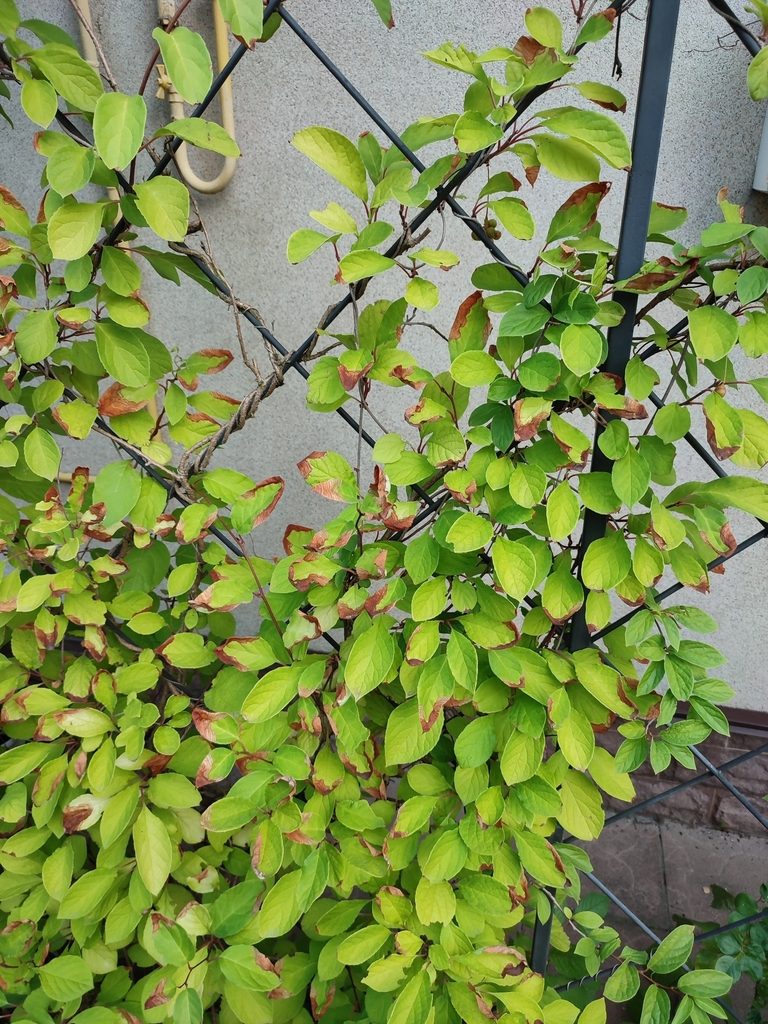 - Актинидия коломикта (Actinidia kolomikta) — лиана с более крупными листьями, часто со светлыми пятнами, а плоды обычно зелёные и не собраны в ярко-красные кисти.