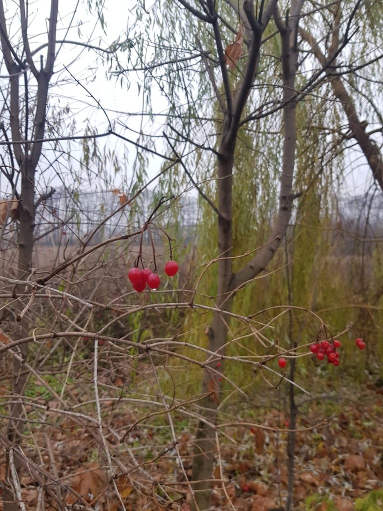 - Калина гордовина (Viburnum lantana) — плоды темнеют до чёрных, листья овальные и заметно опушённые снизу.