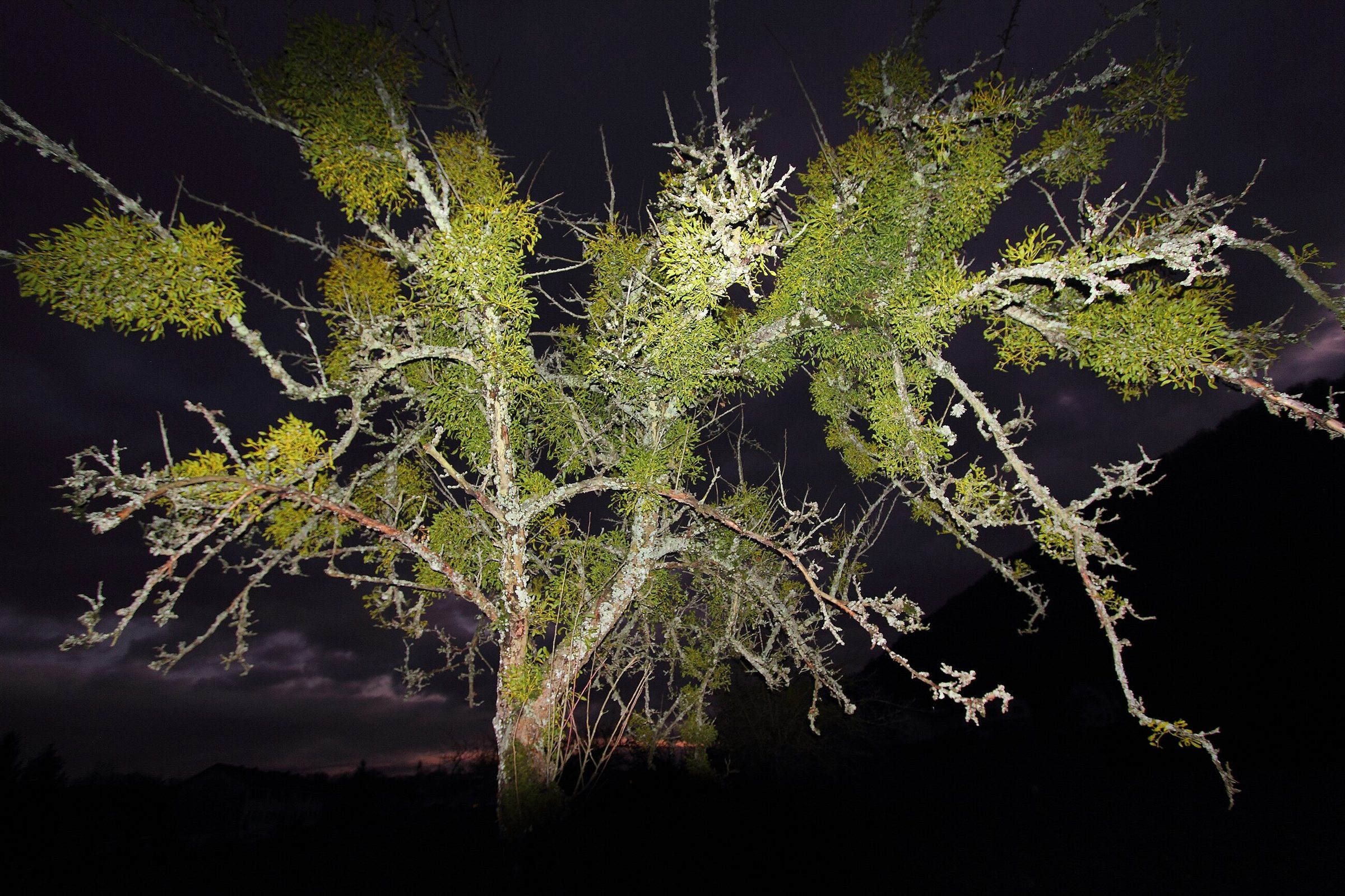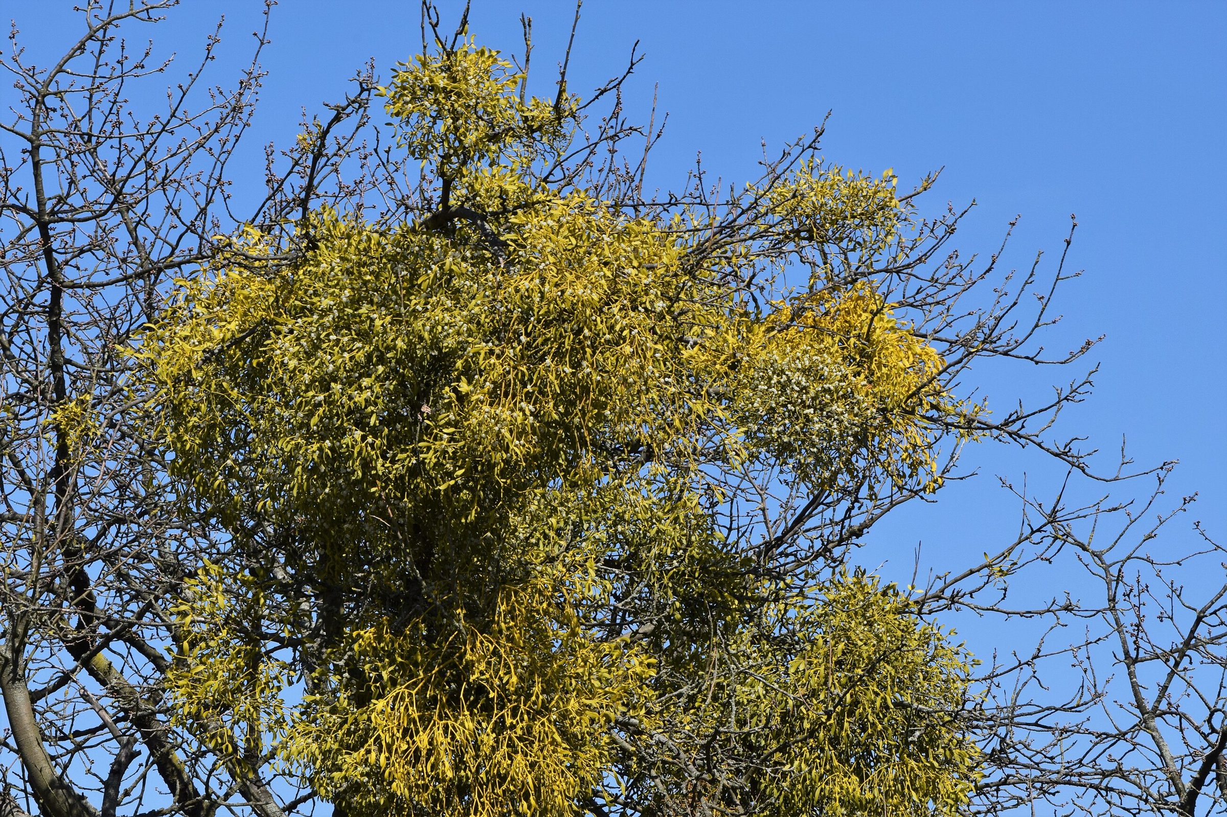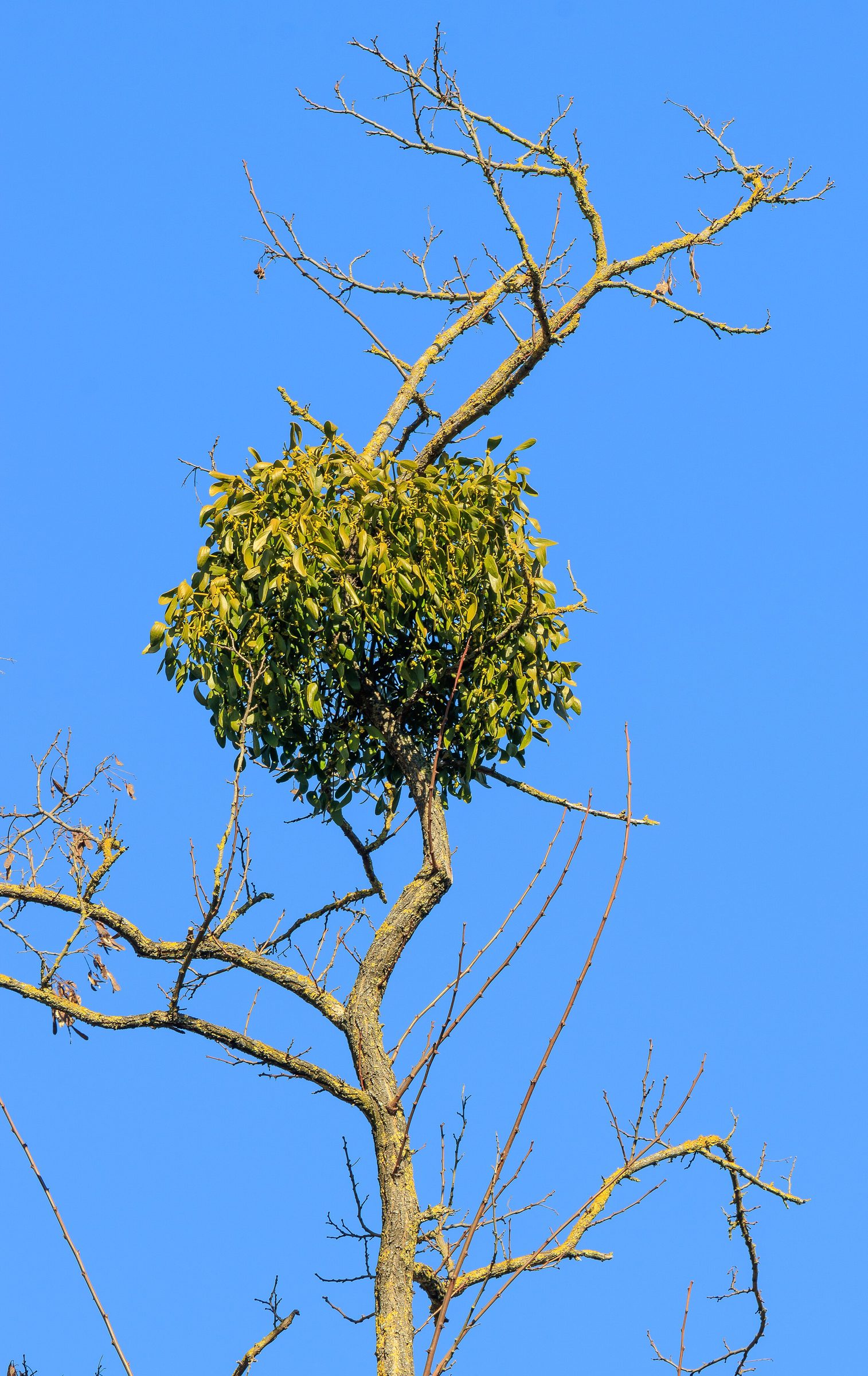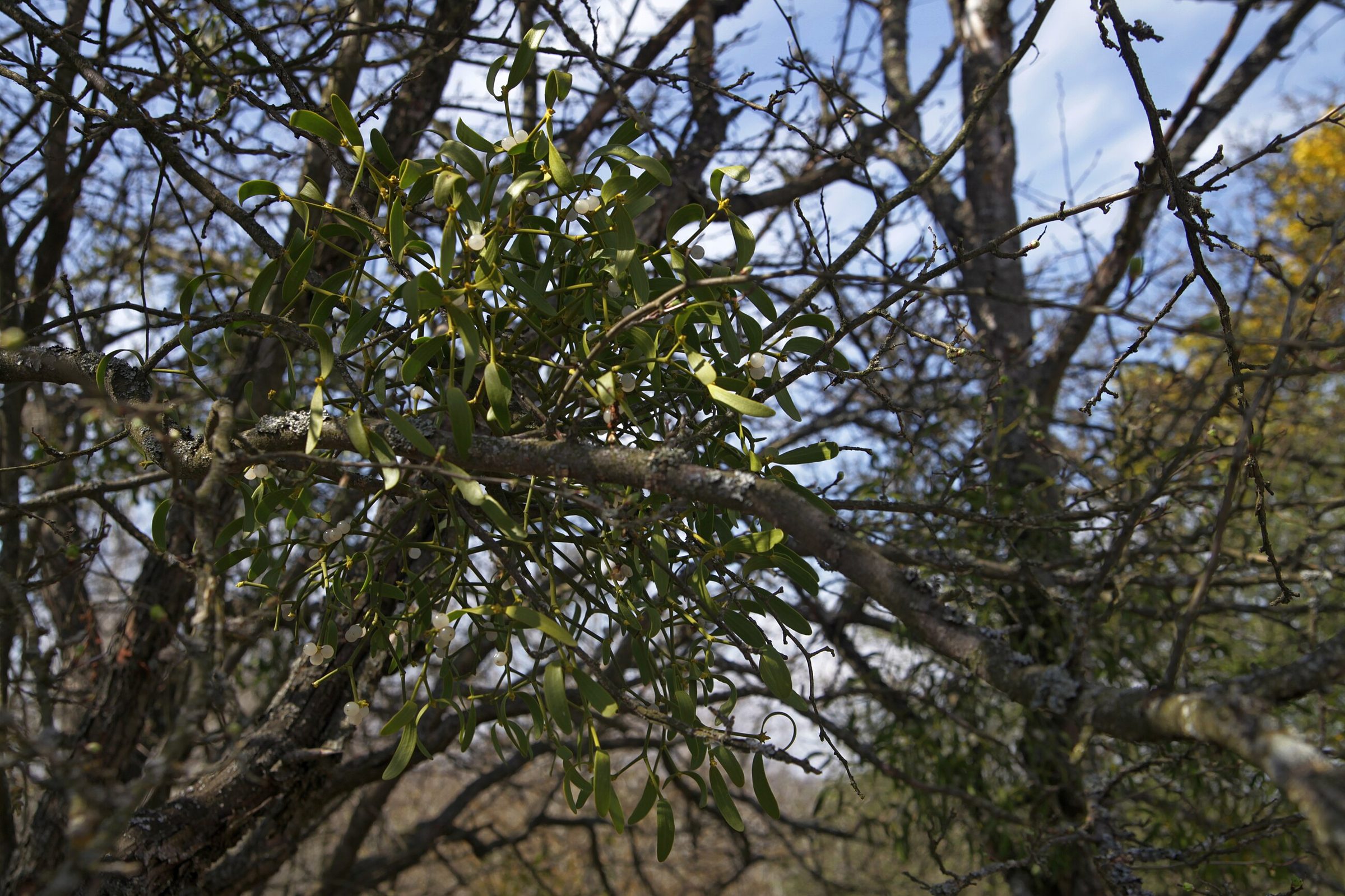 Омела живёт высоко в кроне и получает от дерева-хозяина воду и минеральные вещества, оставаясь при этом зелёной и способной к фотосинтезу.