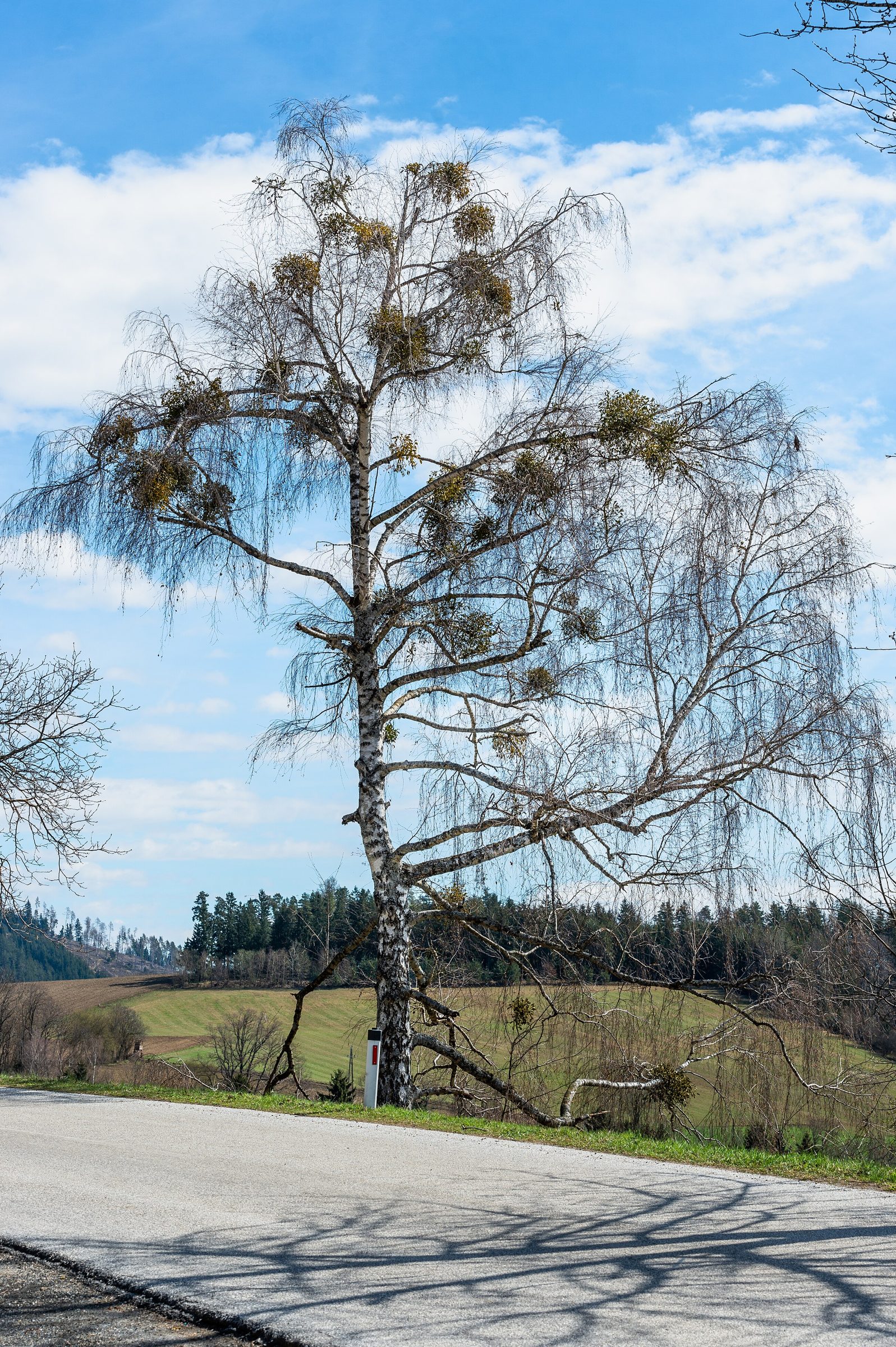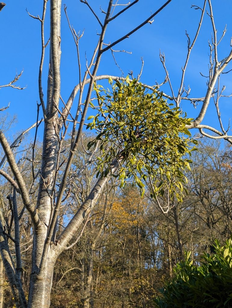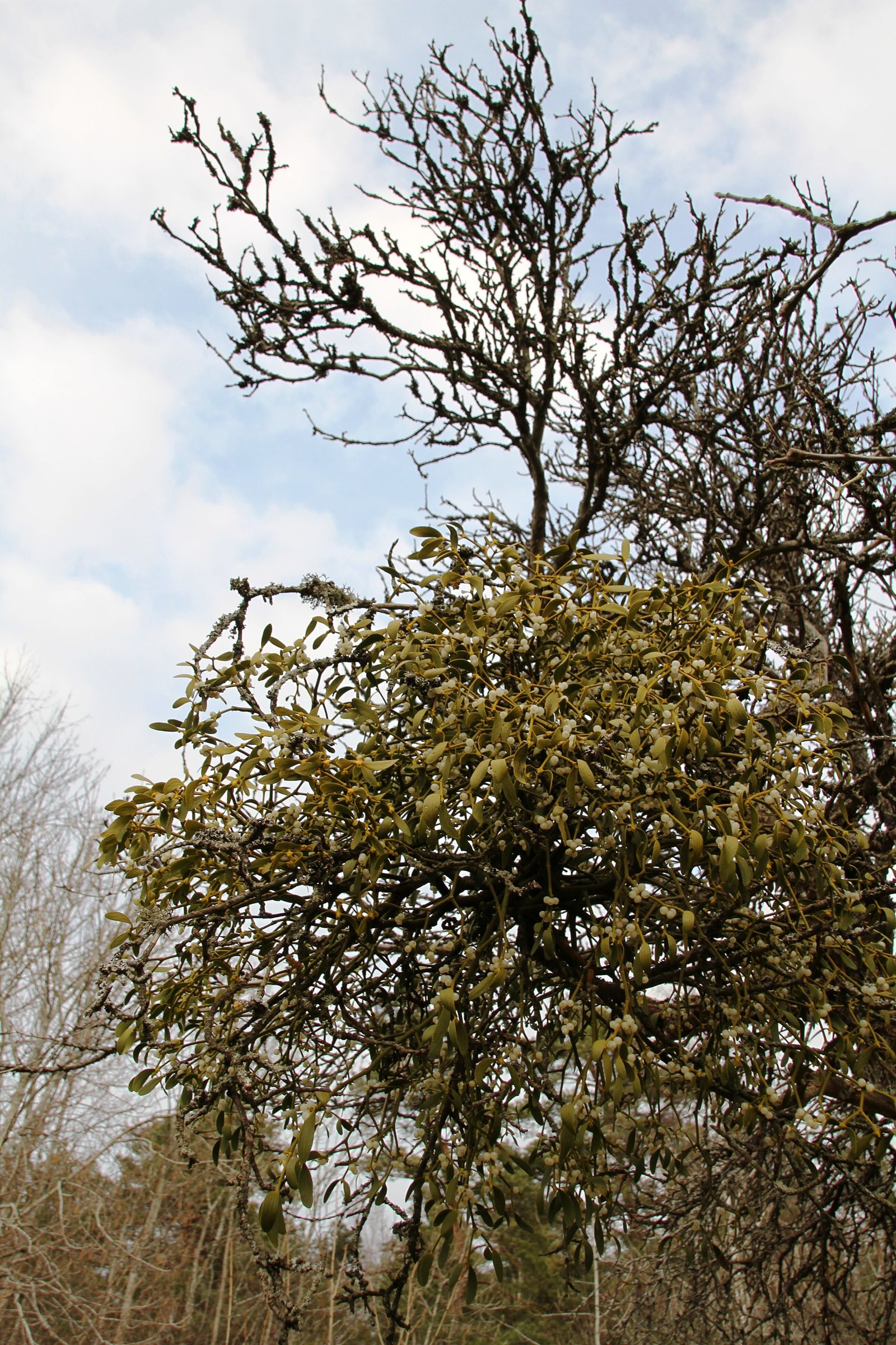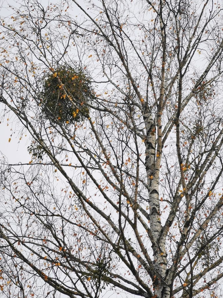 - Как узнать: шаровидный куст на ветвях и белые липкие ягоды зимой.